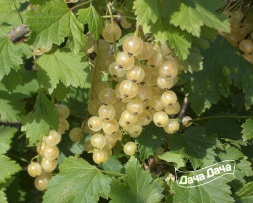 Один из лучших высокоурожайных белых сортов, созревающих в середине июля. Прозрачные ягоды достаточно крупные, средней массой 0,5-1,0 г, сладкие, с легкой кислинкой. Устойчив к болезням.