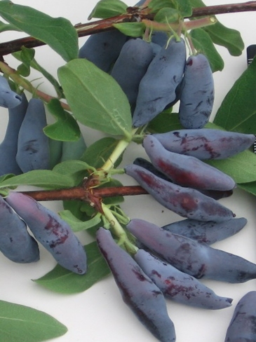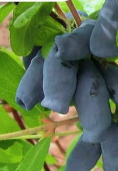 Новый сорт жимолости кусты рослые. Плоды очень крупные (до 3,7г), кувшиновидной формы, с восковым налетом, транспортабельные. Вкус кисло-сладкий с сильным ароматом.