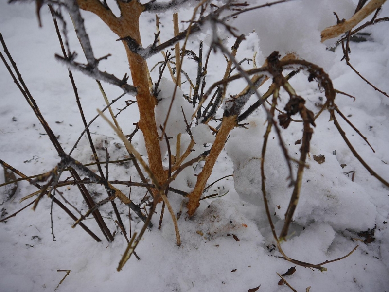Начинают с самого вкусного - молодых яблонь, слив. Объедают на них кору под снегом (а нынче это очень высоко). Такие повреждения залечить весной не получится.